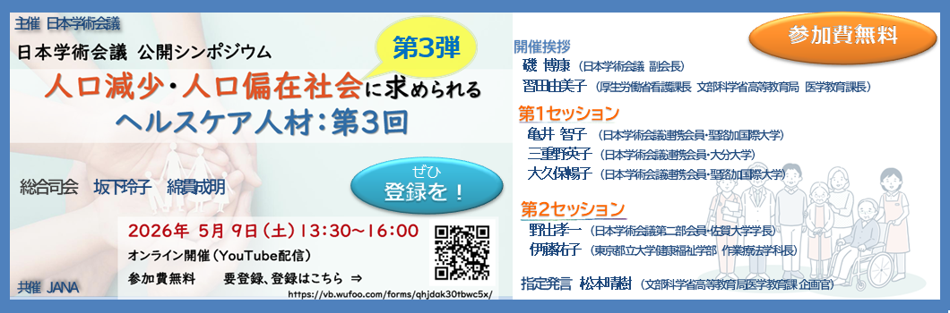 日本学術会議公開シンポジウム「人口減少・人口偏在社会に求められるヘルスケア人材:第3回」開催のお知らせ